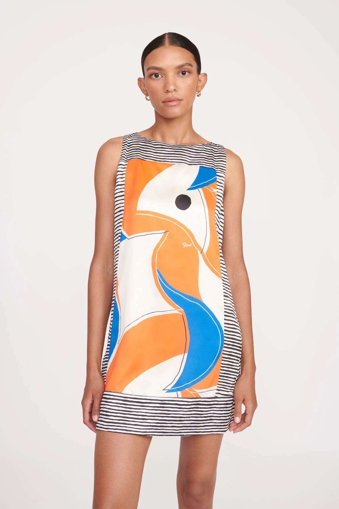 Mini shift dress in a scarf-inspired abstract print. The Hepburn offers an easy straight fit and can be worn with our matching silk scarf.