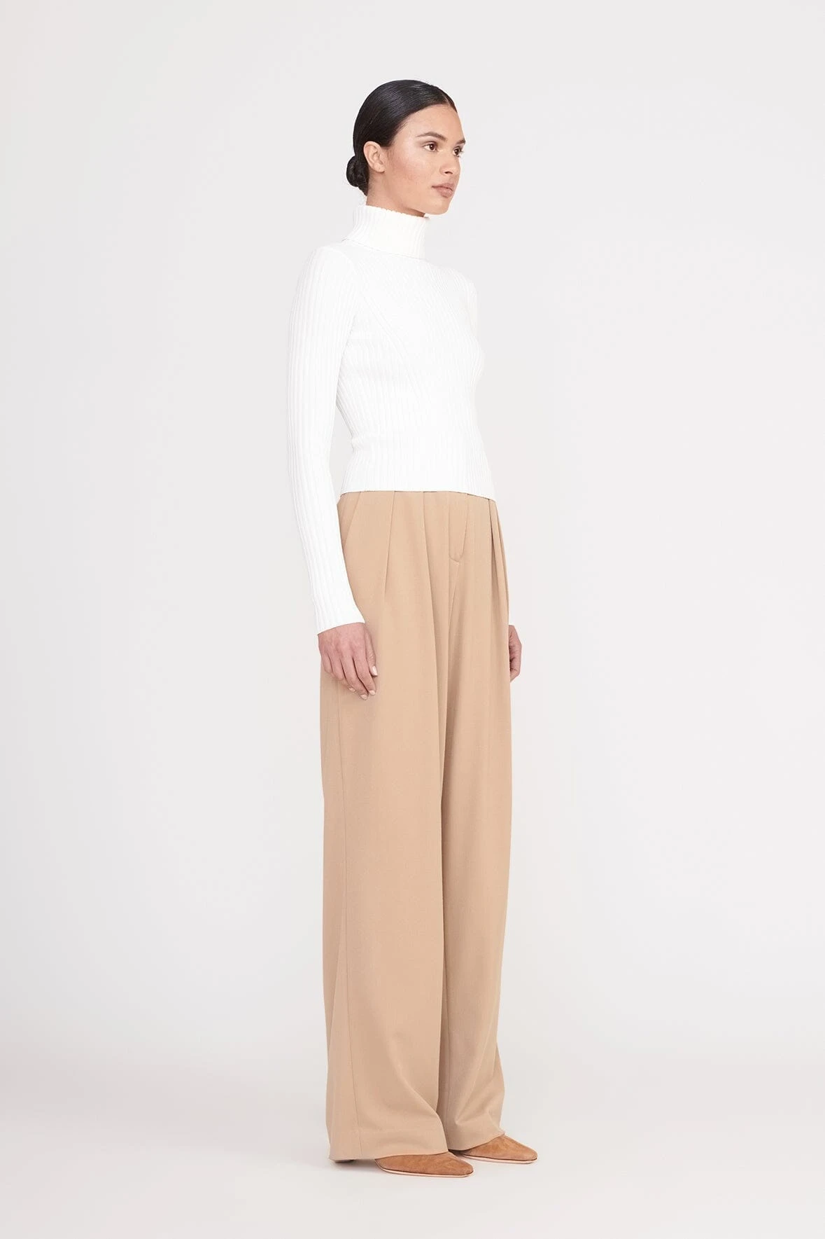 A fitted, long sleeve turtleneck, the Jace Top offers an essential layering piece for any seasonal transition. This style is made out of a rib knit fabric with fully fashioned directional pattern.