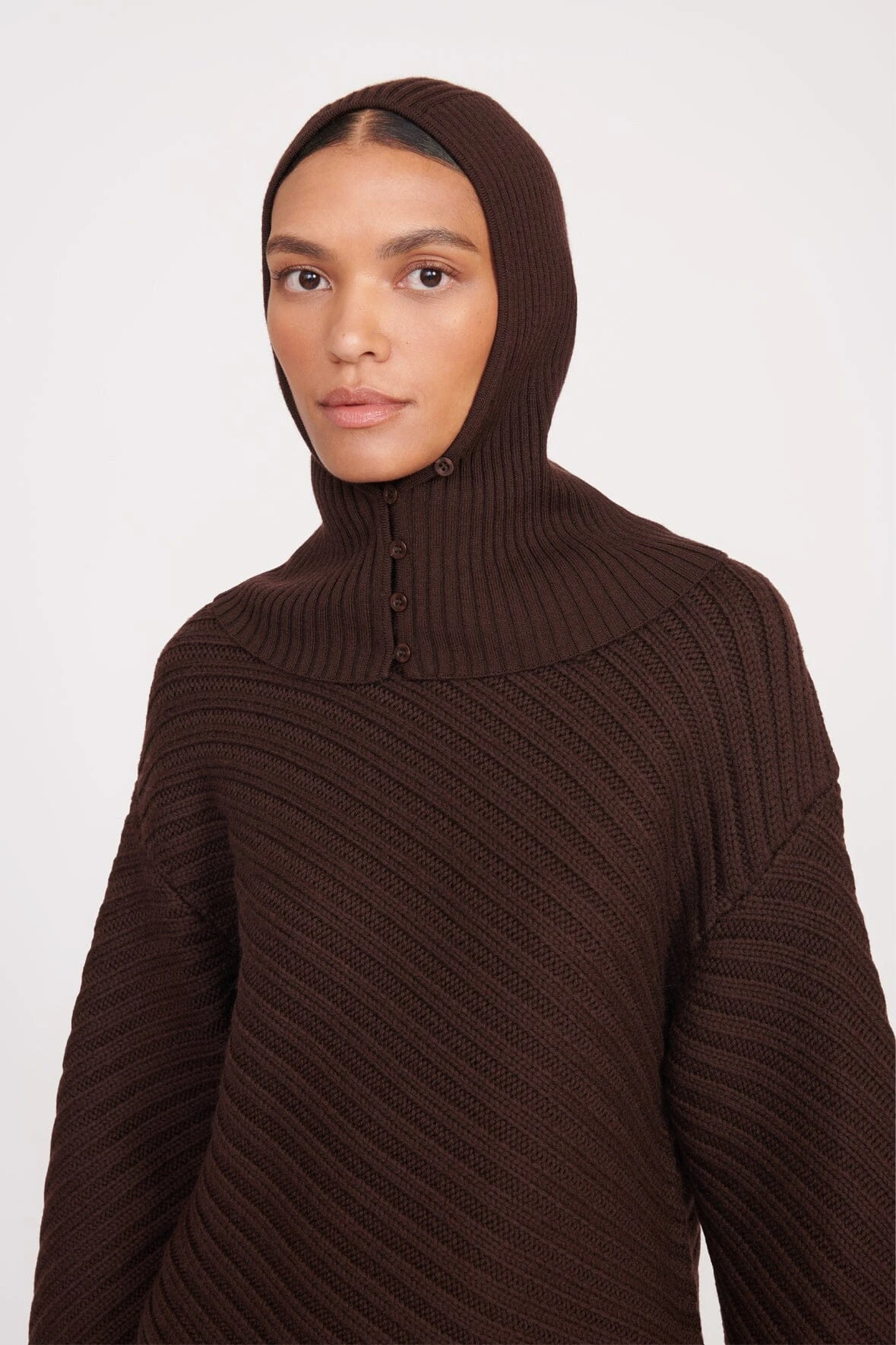 Our first balaclava, this knit hood is perfect layered under the Carver Coat or paired with the Engrave Sweater and the Knit Scarf.