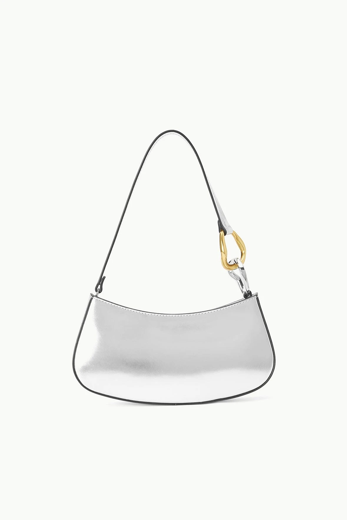 The classic mini shoulder bag in a mirrored chrome update for Fall. The Ollie Bag features a hardware design on the strap and zipper closure.