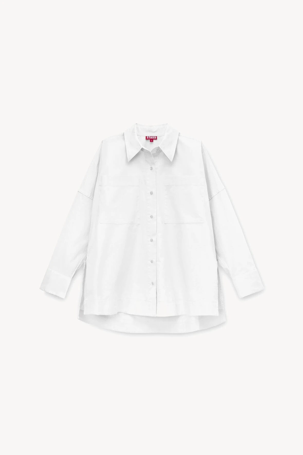 An oversized collared shirt, the Payton Top features patch pockets and is made out of a cotton poplin fabric.