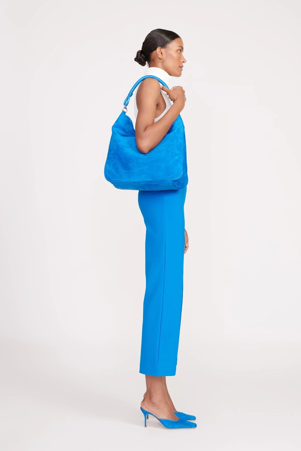 A slouchy suede hobo tote, the Perry Bag features a wrapped leather handle, metal hardware, a magnetic closure and suede lining.